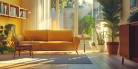Opulent Living Room Interior with a Modern Christmas Tree, a Marble Wall Feature, and a Plush Red Sectional Sofa