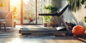 Modern Treadmill Placed in a Stylish Living Room Setting, Inviting Active Living and Home Fitness