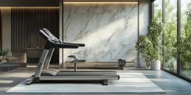 Modern Treadmill Placed in a Stylish Living Room Setting, Inviting Active Living and Home Fitness