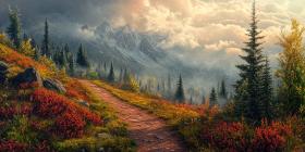 Eerie Stone Path Winding Through a Fog-Shrouded Forest