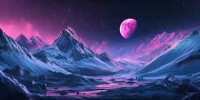 Serene Moonlight Illuminates a Tranquil River Winding Through a Forest of Dark Trees and Snow-Capped Mountains