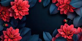 Festive Floral Frame with Vibrant Pink and Peach Dahlias and Delicate Petals on a White Background