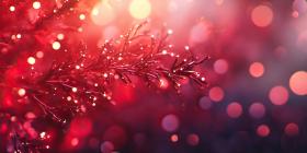 Festive Red Background with Sparkling Lights and Delicate Twigs, Perfect for Holiday Greetings