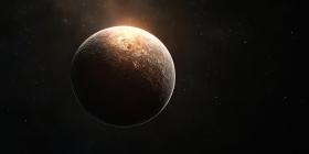 Blood Moon Rising Over a Desolate Alien Landscape, Casting an Eerie Glow on a Rocky Terrain