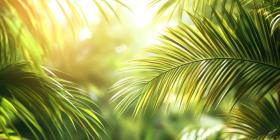Sunlight Filtering Through Lush Green Palm Leaves, Evoking a Sense of Tranquility and Tropical Paradise