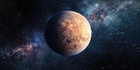 Blood Moon Rising Over a Desolate Alien Landscape, Casting an Eerie Glow on a Rocky Terrain
