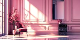 A Luxurious Upholstered Armchair with Gilded Gold Accents Stands Elegantly in a Grand Hallway Bathed in Sunlight.