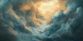 A Majestic Mountain Range Pierces the Clouds, Casting Shadows Over a Lush Valley Below.