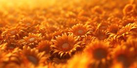 A sea of vibrant orange sunflowers bathed in warm sunlight, creating a breathtaking field of golden blooms