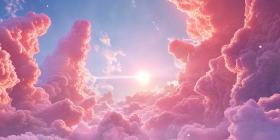 Dreamy Pastel Sky at Sunset, with Puffy Pink Clouds and a Golden Horizon