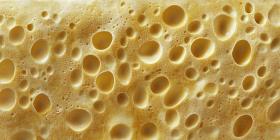 Close-up Macro of a Swiss Cheese Slice, Revealing its Intricate Network of Air Bubbles and Golden Yellow Texture