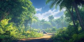 A sunlit clearing in a vibrant enchanted forest, teeming with life and inviting exploration
