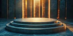 Stage of Mystery: A circular platform bathed in warm light, set against a backdrop of textured darkness, invites contemplation and discovery