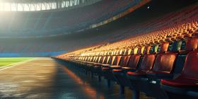 Empty Stands, Endless Possibilities: A vast stadium awaits the roar of the crowd, its rows of seats bathed in the golden light of anticipation