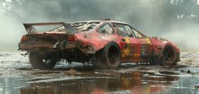 Muddy Mayhem: A rugged off-road vehicle powers through a muddy terrain, churning up a cloud of spray and showcasing its power and resilience