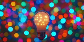 Illumination: A single incandescent bulb glows brightly against a backdrop of vibrant bokeh, symbolizing inspiration and the power of ideas