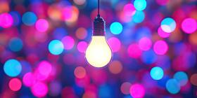 Illumination: A single incandescent bulb glows brightly against a backdrop of vibrant bokeh, symbolizing inspiration and the power of ideas