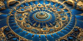 A Tapestry of Gold and Blue: An intricate circular design, adorned with ornate patterns and shimmering gold accents, evokes a sense of grandeur and timeless elegance