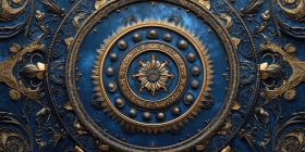 A Tapestry of Gold and Blue: An intricate circular design, adorned with ornate patterns and shimmering gold accents, evokes a sense of grandeur and timeless elegance