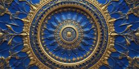 A Tapestry of Gold and Blue: An intricate circular design, adorned with ornate patterns and shimmering gold accents, evokes a sense of grandeur and timeless elegance