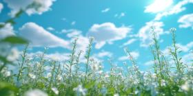 Spring Awakening: A field of delicate blossoms reaches towards a sun-drenched sky, a vibrant display of nature's renewal