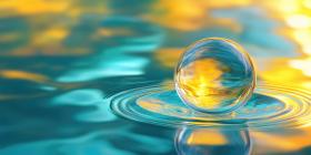 World in a Drop: A crystal sphere reflects the sky and water, capturing a miniature world within its translucent surface