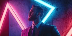 Futuristic Urban Scene with Neon Lights and Glowing Triangle