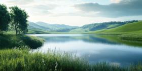 Where Tranquility Resides: A Serene Lake Nestled Amidst Rolling Hills