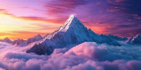 A Celestial Throne of Snow, Bathed in the Crimson Glow of Sunset