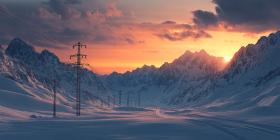 Where Power Lines Trace a Path Through a Crimson Sky, a Winter Landscape Awaits