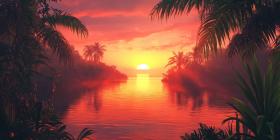 A Crimson Canvas: Where the Sky Paints a Picture Over Still Waters