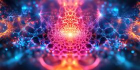 Cosmic Tapestry: A Fractal Network of Light, Where Vibrant Hues of Blue, Pink, and Orange Intertwine and Dance