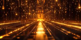 Golden Waves: A Dynamic Abstract of Intertwining Gold Particles, Pulsating with Warmth and Radiance