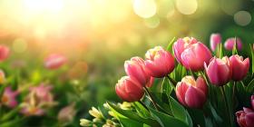 Enchanting Eden: A Path of Blossoms Winds Through a Sun-Drenched Forest, Bathed in Warm Light