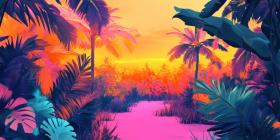 Neon Jungle: A Surreal Dreamscape of Luminous Foliage Bathed in Electric Hues
