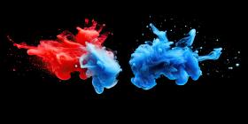 Collision of Colors: A Dynamic Abstract of Intertwining Red and Blue Ink, Evoking Energy and Motion