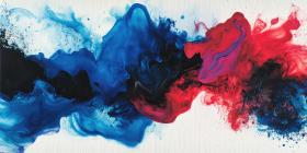 Collision of Colors: A Dynamic Abstract of Intertwining Red and Blue Ink, Evoking Energy and Motion