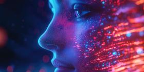Futuristic Human-like Face with Glowing Digital Aesthetic