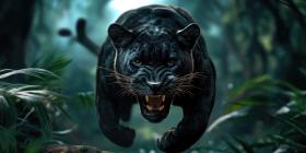 Horror Black Leopard Running in The Jungle as Angry