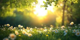 Dawns Embrace: A Field of Delicate Daisies Bathed in the Golden Light of Sunrise