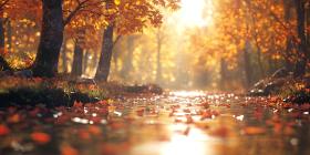 Autumnal Reverie: A Golden Tree Stands Sentinel Beside a Tranquil Pond, Leaves Dancing on the Water's Surface