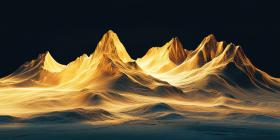 Golden Peaks: A Surreal Landscape of Illuminated Mountains, Bathed in a Warm, Otherworldly Glow