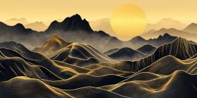 Golden Peaks: A Surreal Landscape of Illuminated Mountains, Bathed in a Warm, Otherworldly Glow