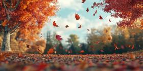 Autumnal Waltz: A Path Through a Vibrant Forest, Where Leaves Dance in the Sunlight
