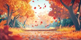 Autumnal Waltz: A Path Through a Vibrant Forest, Where Leaves Dance in the Sunlight