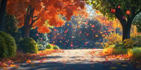 Autumnal Waltz: A Path Through a Vibrant Forest, Where Leaves Dance in the Sunlight