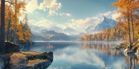 Autumnal Reflections: A Tranquil Pond Reflects the Golden Hues of Fall Foliage, Beneath a Canopy of Crimson Trees