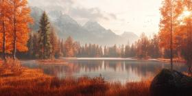Autumnal Reflections: A Tranquil Pond Reflects the Golden Hues of Fall Foliage, Beneath a Canopy of Crimson Trees