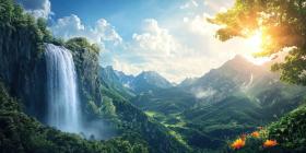A Cascading Jewel: The Seven Sisters Waterfall Plunges Dramatically into the Fjord, Surrounded by Majestic Norwegian Mountains