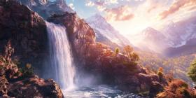 A Cascading Jewel: The Seven Sisters Waterfall Plunges Dramatically into the Fjord, Surrounded by Majestic Norwegian Mountains